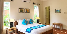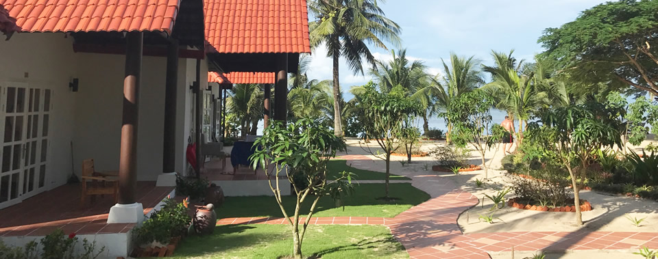 Our Garden View Double rooms are simple and comfortable but has all the amenities you would need. It is set amongst our garden of coconut trees and shrubs and is about 20 metres to the beach.