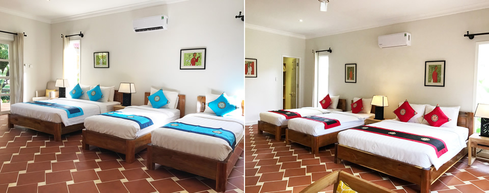 Our Garden View Triple rooms are located adjacent to the new swimming pool and has good sea view from the balcony. Room is set amongst our garden of coconut trees and shrubs and is about 20 metres to the beach.
